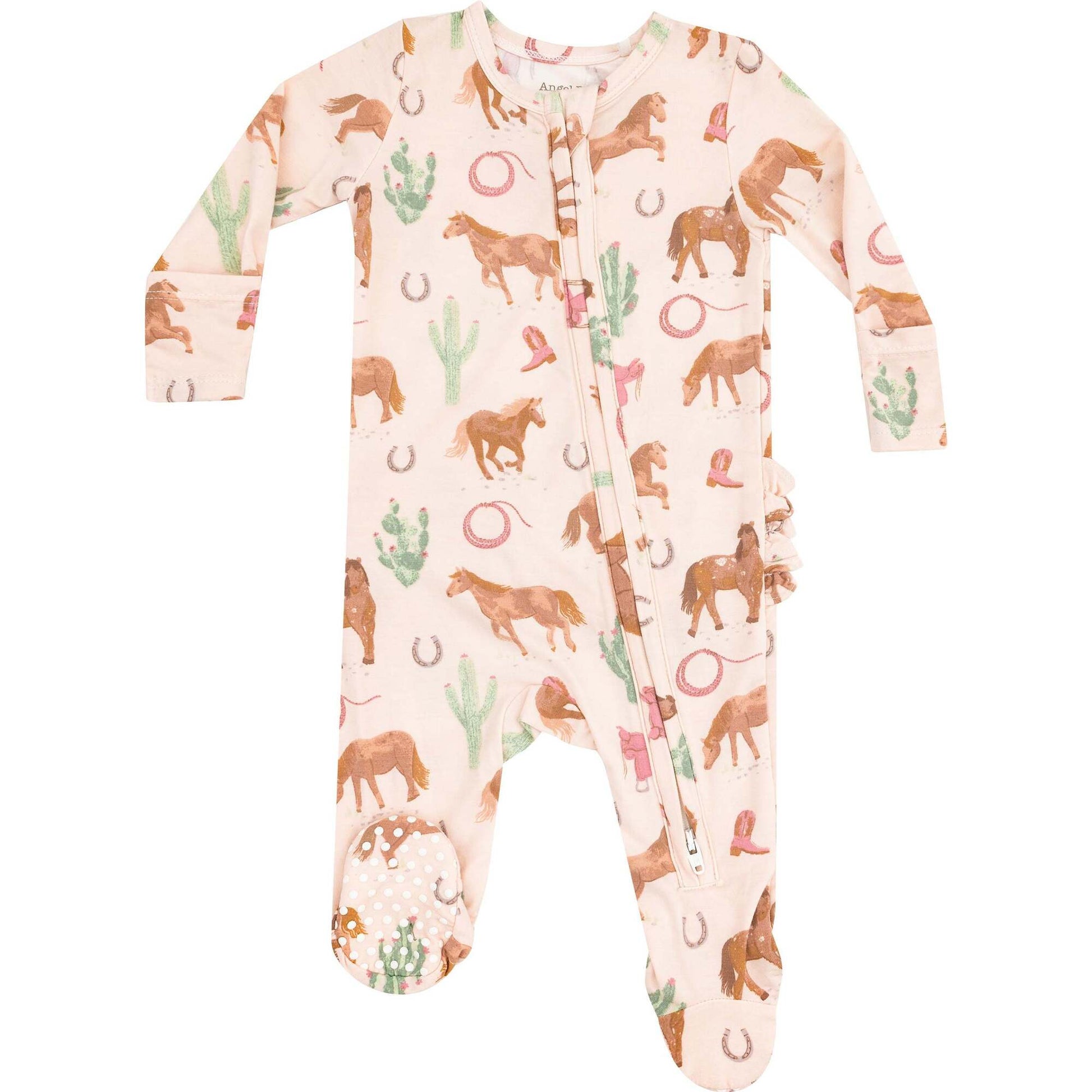 2 Way Zipper Ruffle Back Footie - Western Horses Pink