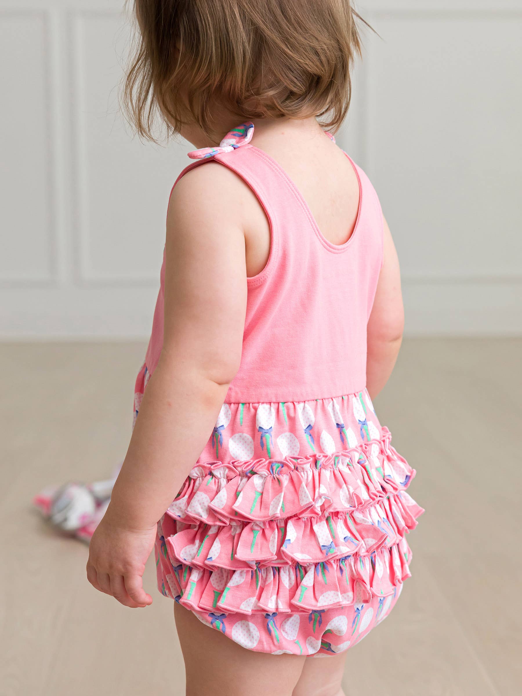 Baby Girls Pink Tee Time Knit Tie Shoulder Bubble Romper