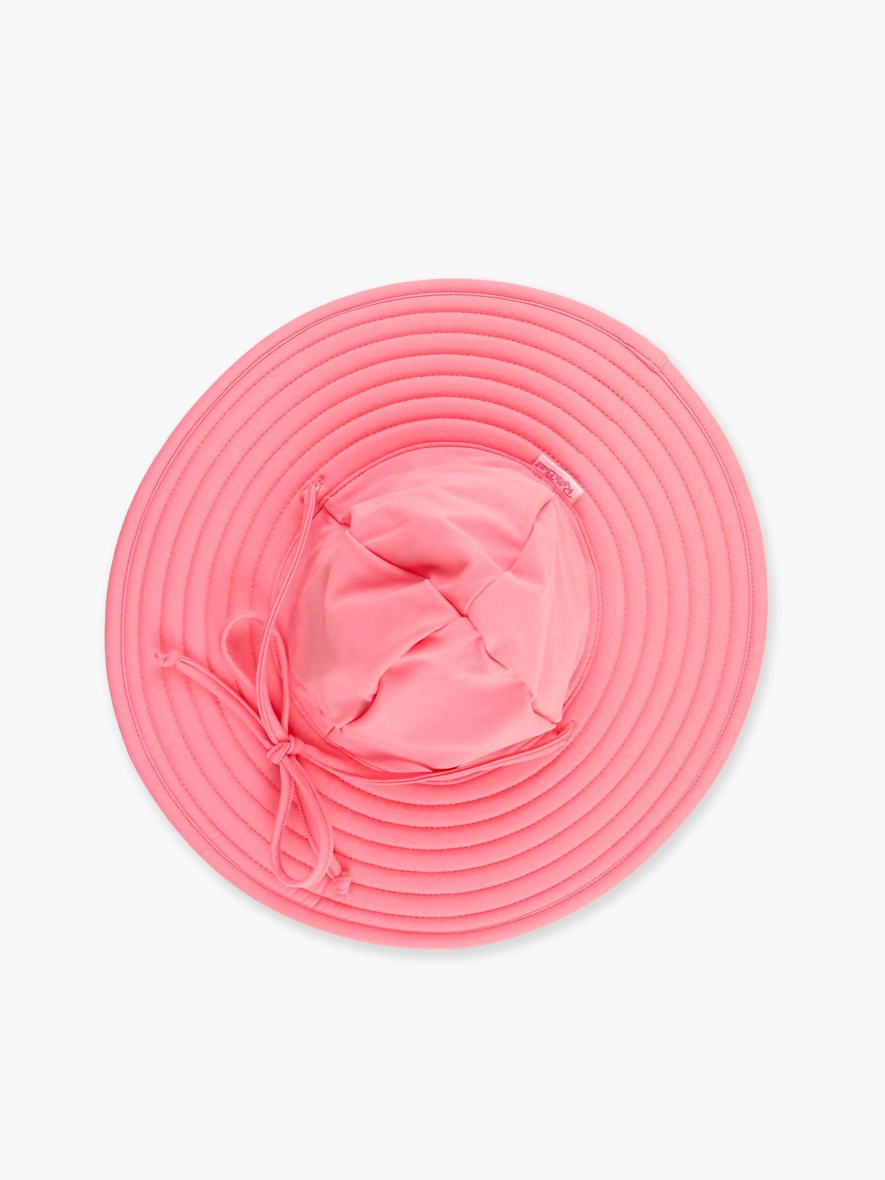 This sweet swim hat has built in UPF 50+ sun protection to keep little ones extra safe from the sun's harmful rays. All sizes feature functional ties and can be styled two ways: tied under the chin to ensure a snug fit or tucked up through the brim and tied in the back in a fun bow! The bright pink is perfect for adding a pop of color into an outfit!