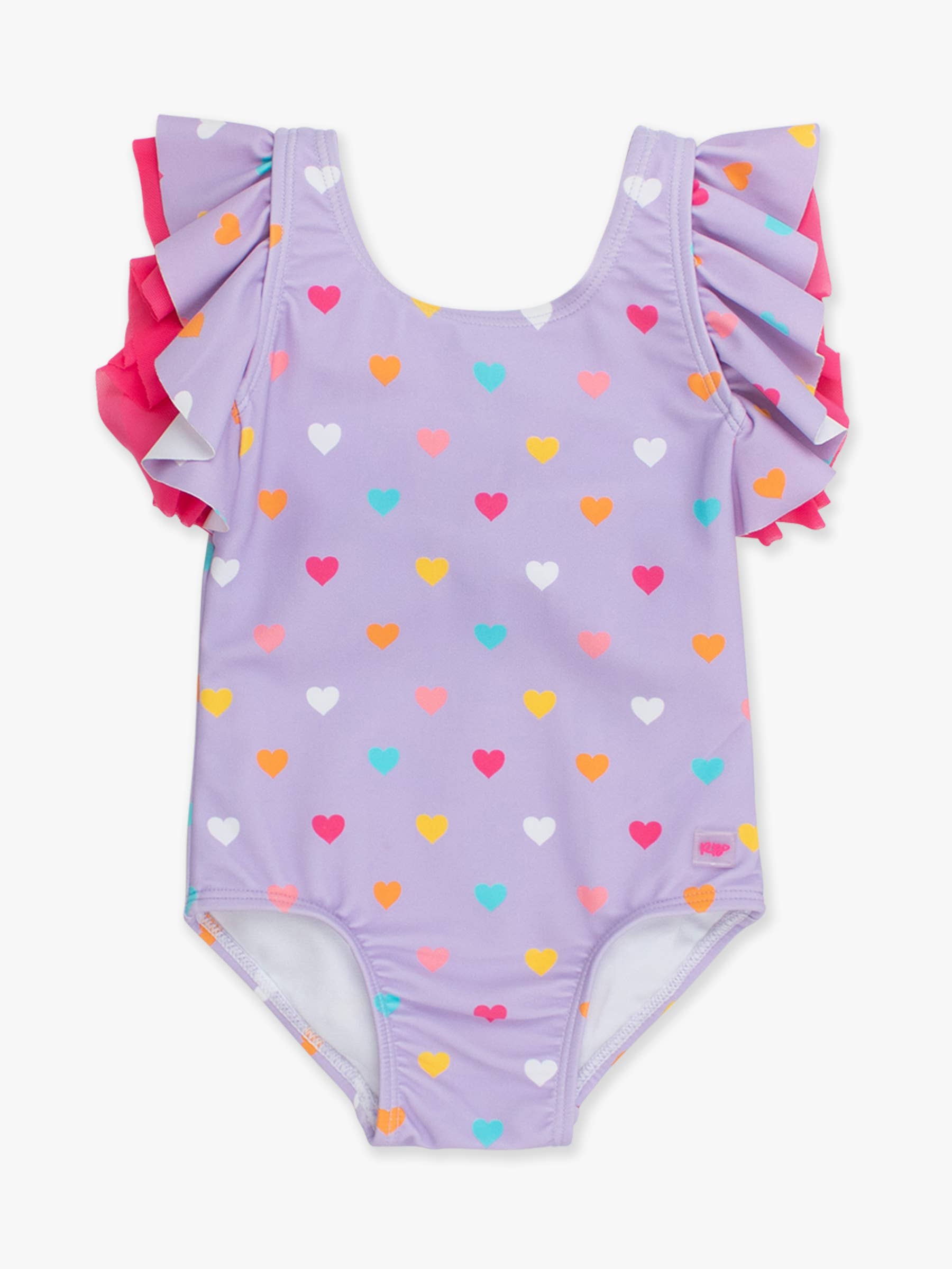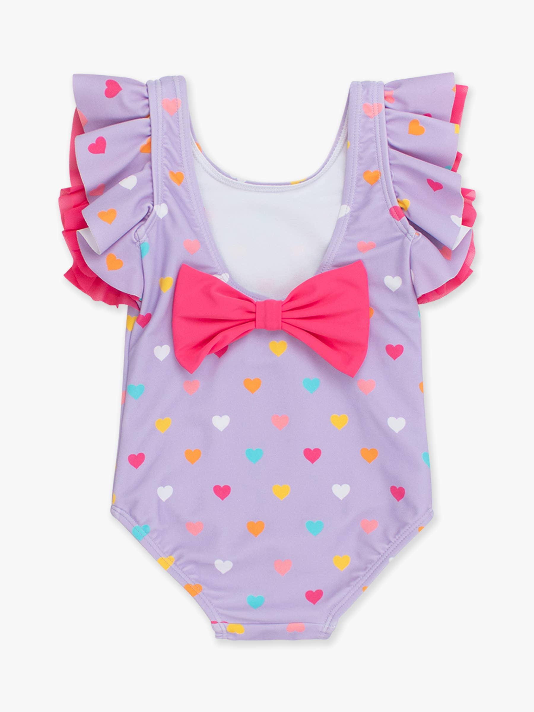 Girls Lavender Colorful Hearts Butterfly Sleeve One Piece Swimsuit