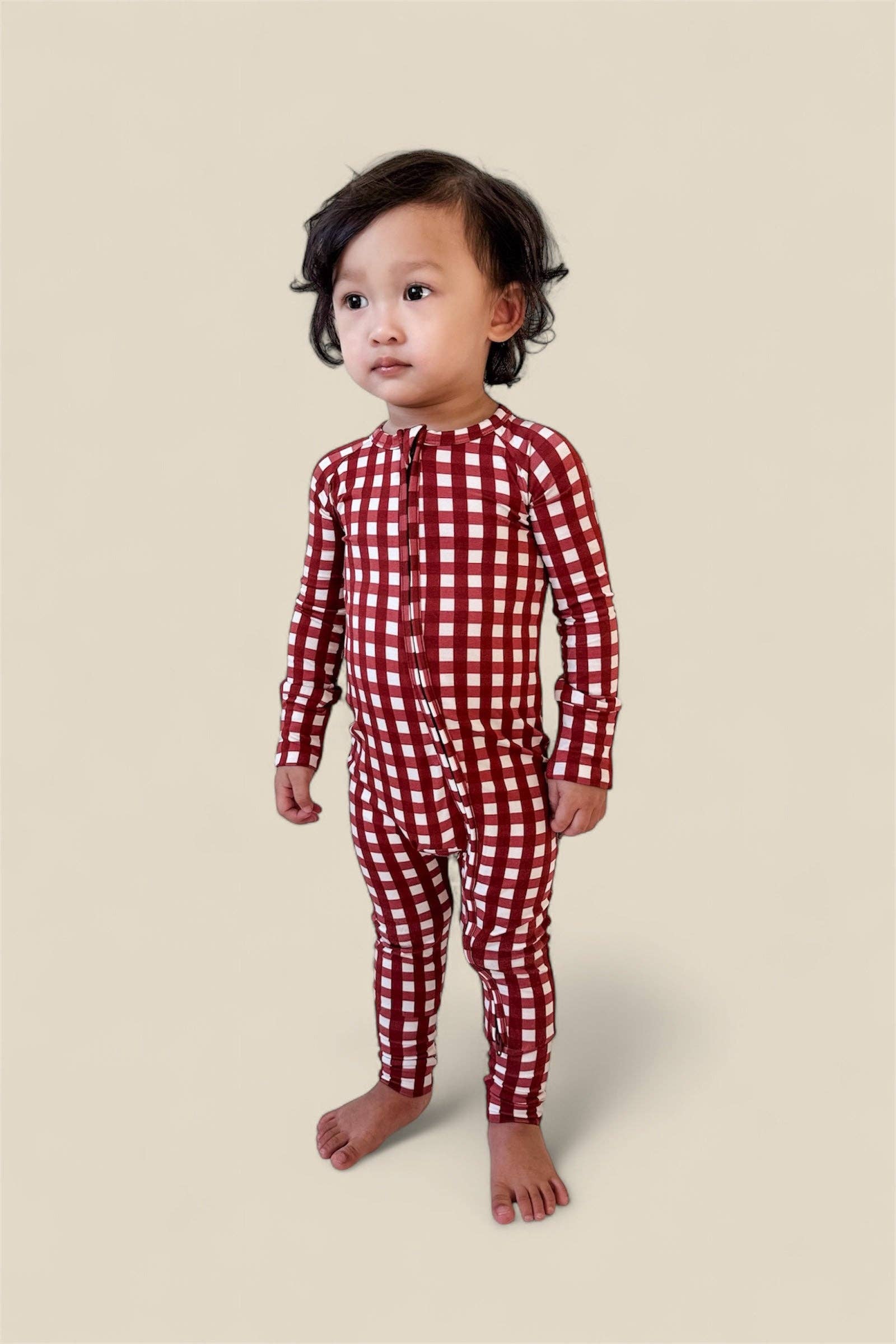 Plaid Tidings & Snuggly Dreams 🎁 Wrap your little one in timeless holiday charm with the Peppermint Plaid Dream Romper! Featuring a rich, festive burgundy tartan print and buttery-soft fabric, this cozy romper is perfect for everything from Christmas morning cuddles to winter strolls. With fold-over mittens and footies for extra warmth and a double zipper for easy diaper changes, it’s a holiday essential for your tiniest tradition-maker.